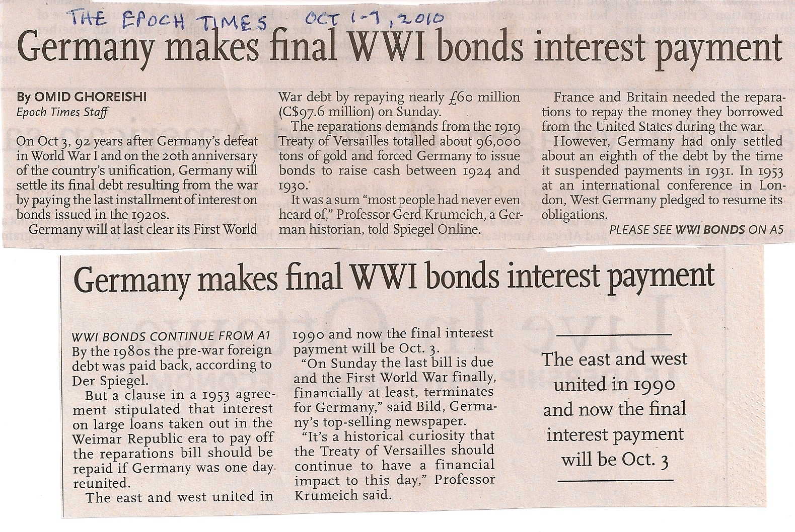 L'Allemagne vient de finir en 2010 de payer ses dettes de la première guerre mondiale (sic) !