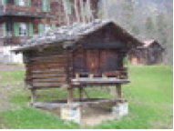 Mazot, remarquez les "échasses" et les pierres plates en-haut des échasses en bois pour stopper la vermine