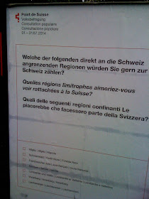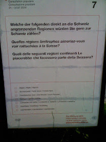 Considérant le manque d'intérêt de la classe politique nationale et européenne dont souffrent certaines régions limitrophes , leur volonté croissante d'obtenir de l'autonomie par rapport à l'Etat central (ou Bruxelles), le Conseil fédéral est chargé de proposer dans les meilleurs délais à l'Assemblée fédérale, un cadre constitutionnel et légal opérationnel, qui permettrait éventuellement, si une majorité de la population en faisait la demande, aux départements, provinces et länder limitrophes suivants:- Alsace (F)