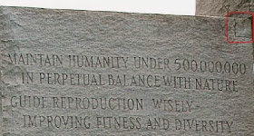 Le plus étrange et le plus mystique des monuments Américain . Message que transmet ce monument : réduire la population mondiale à 500.000.000 d'habitants. Rien que çà.