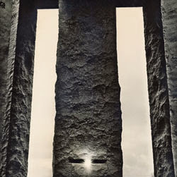 Le plus étrange monument d’Amérique s’étend sur une colline aride du nord de la Géorgie. Cinq tables massives de granit poli sortent de la terre en forme d’étoile. Les rocs font chacun 16 pieds de haut, et quatre d’entre eux pèsent plus de 20 tonnes. Ils soutiennent un monolithe de 25 000 livres. Lorsqu’on s’approche de l’édifice, il est difficile de ne pas penser immédiatement au Stonehenge d’Angleterre, ou éventuellement à l’inquiétant monolithe de 2001 : Odyssée de l’espace. Construit en 1980, ces rocs gris pales attendent paisiblement la fin du monde comme nous le savons.