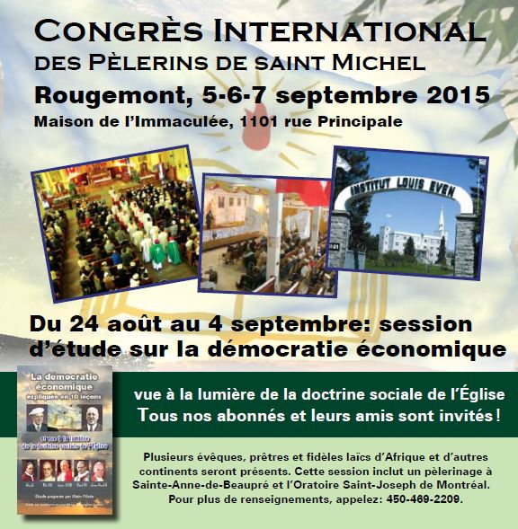 Chaque année, une semaine d'étude a lieu à Rougemont au Canada en 4 langues fin août suivie du congrès international début septembre (fête du travail au Canada), avec des pèlerinages facultatifs offerts. Repas, pèlerinages ( not. St Joseph, N-D du Cap et St Anne) et couchers gratuits pour tous nos invités des pays hors du Canada.