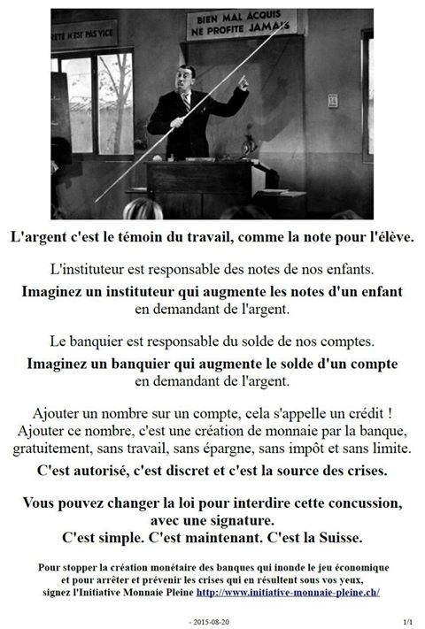 La création monétaire est actuellement volée (sic) par le système bancaire.