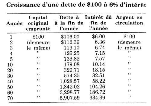 4 Savoir doubler l’intérêt fait partie de la science bancaire… Ainsi en est-il de la vente à crédit mensuel à 8 %, qui est en réalité à 16 %, et qu’on tente de généraliser en Europe. (c’était en 1950)