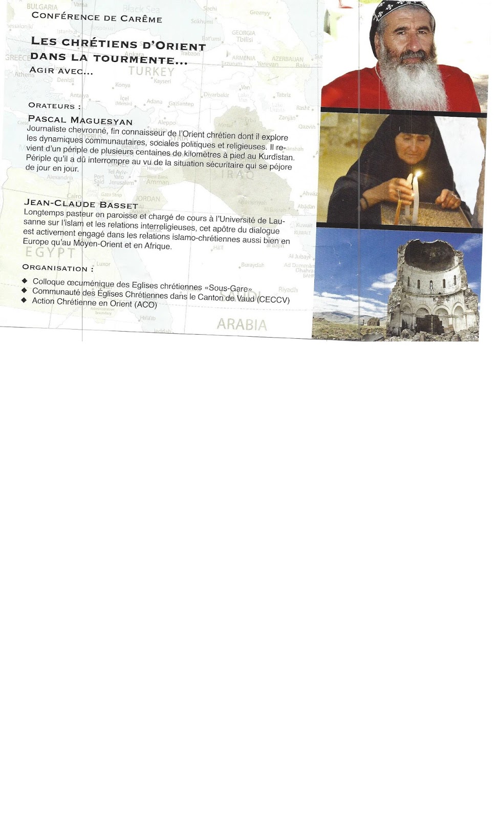 - Organisation: conférence organisée par les Eglises sous-gare, avec la Communauté des Eglises chrétiennes dans le canton de Vaud