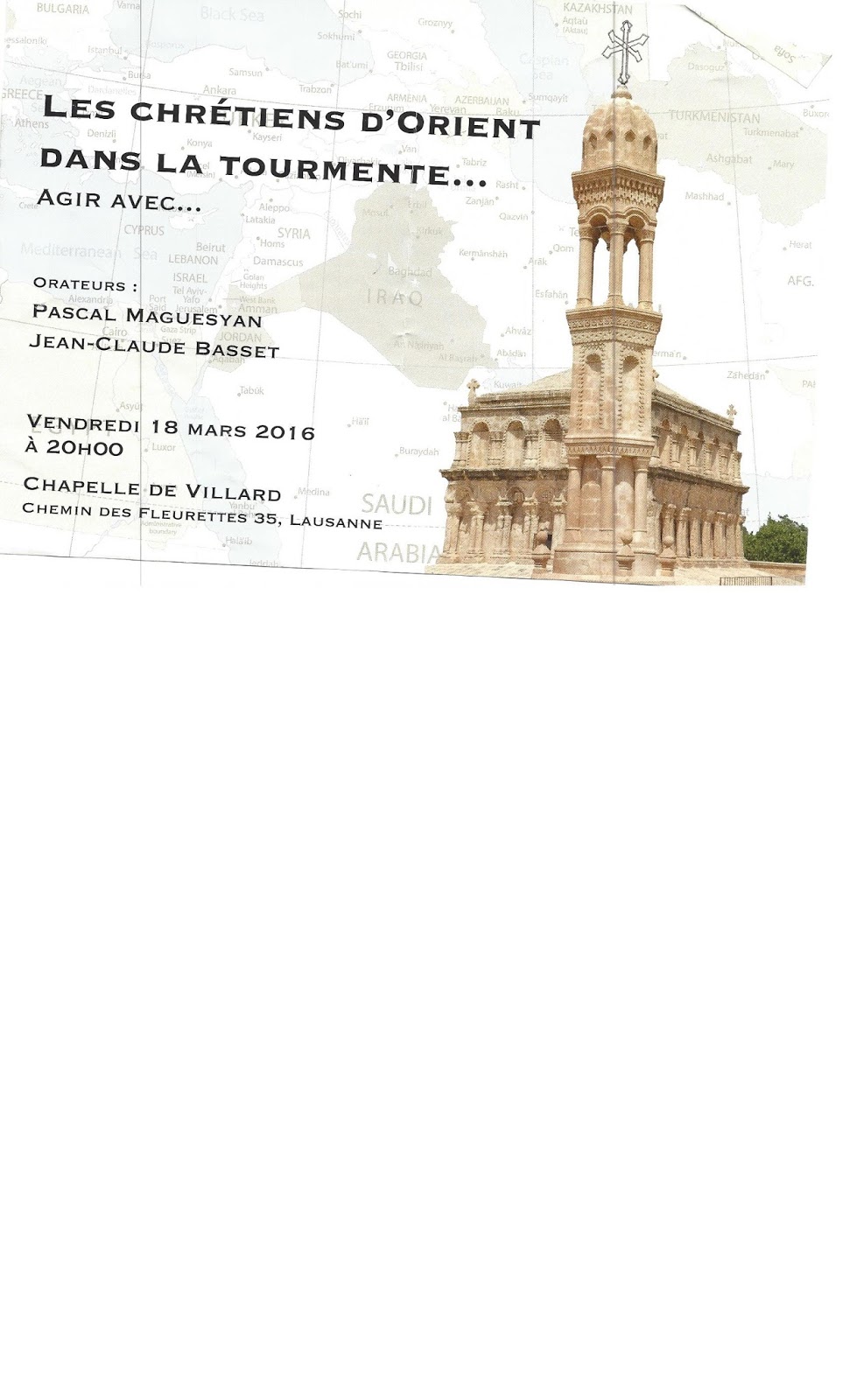 - Date et lieu: vendredi 18 mars 2016 à 20h à la chapelle de Villard (ch. des fleurettes 35, Lausanne).