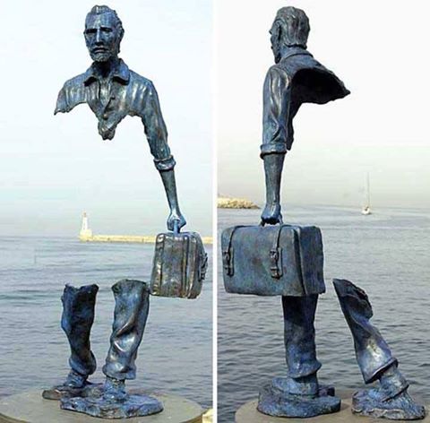 Enrico, dottore in agraria, un pò grassotto, seduto su una valigia salvata dal naufragio.