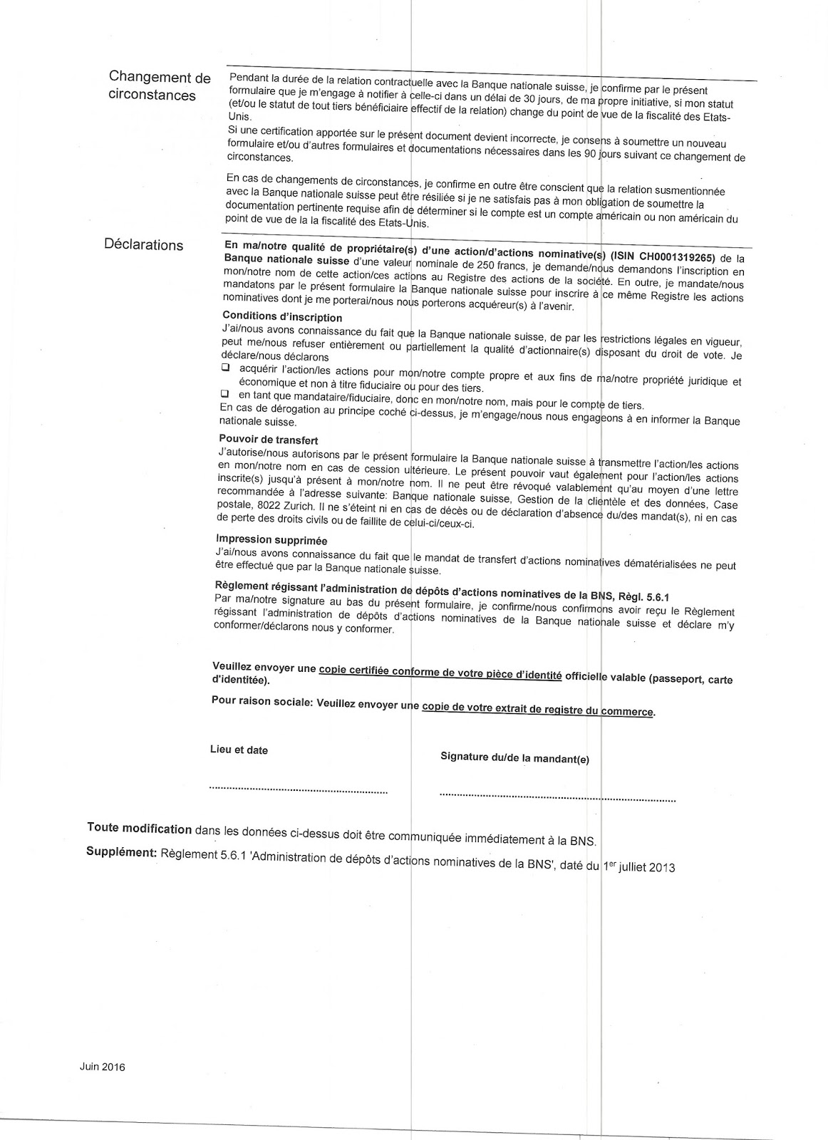 La BNS transmet à la représentante indépendante les bulletins-réponse signés qui lui sont adressés et qui ne comprennent ni déclaration personnelle de participation ni mention d'un mandataire, mais sont accompagnés d’instructions de vote. En l’absence d’instructions de vote, la BNS considère ces bulletins-réponse comme inscriptions personnelles des actionnaires concernés.