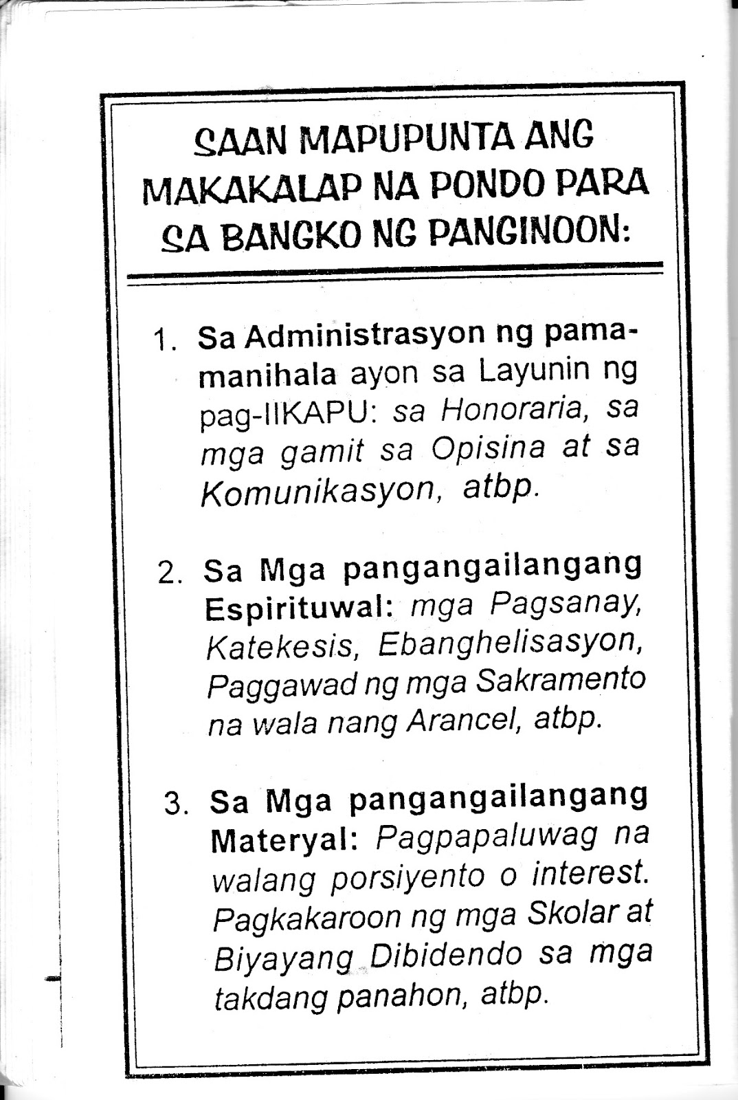 Philippines. The Lord's bank