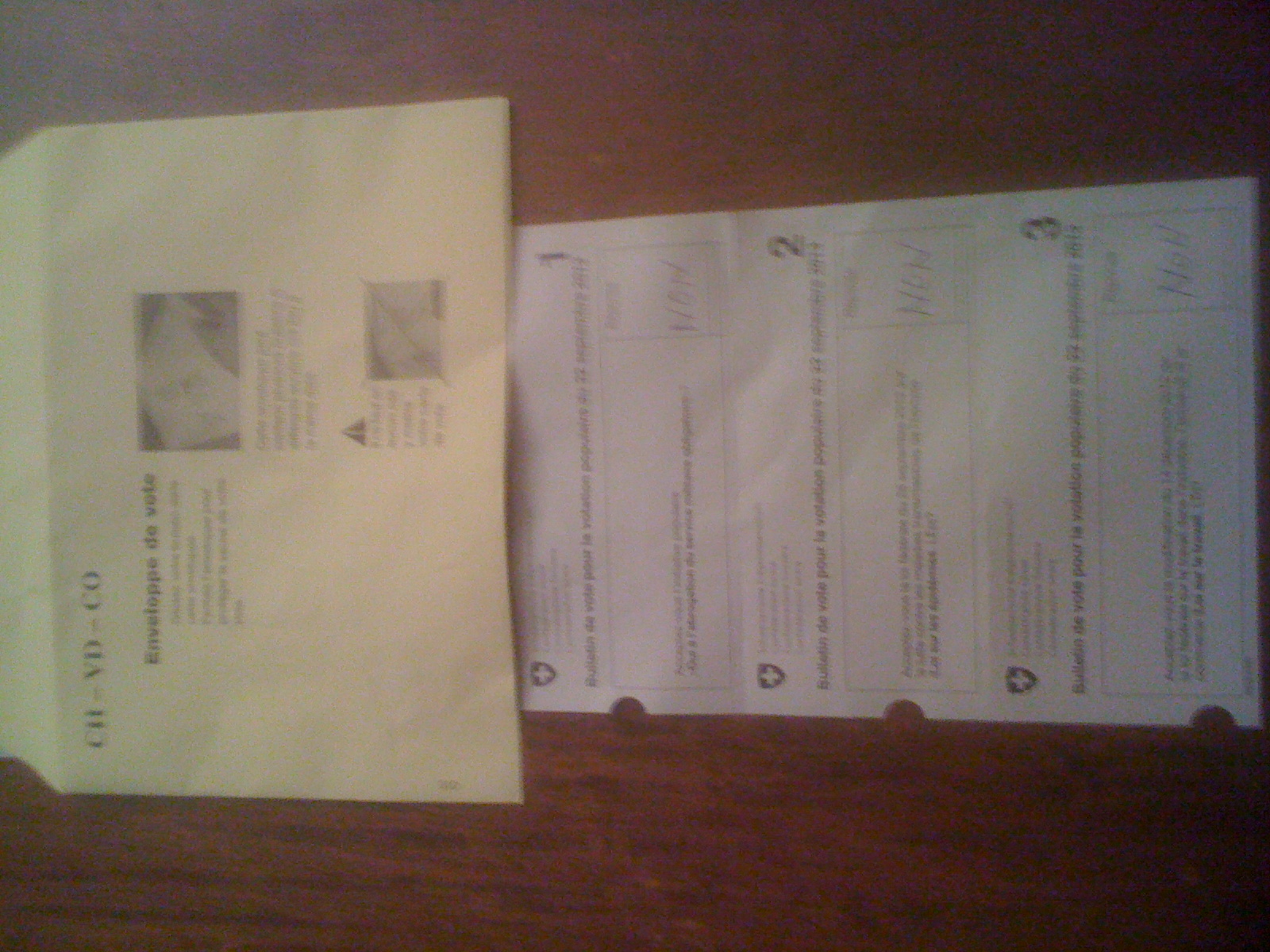 Votes de septembre 2003, enveloppes transparentes au moins à Lausanne, on peut lire le NON par transparence, je viens de faire la photo chez moi avec un simple spot halogène. Ils ont du matériel professionnel, style projecteurs surpuissants ou flash stroboscopique et peuvent lire les 3 votes fédéraux par simple localisation sur la feuille, en références aux marques ou aux chiffres imprimés, enfantin pour un spécialiste.